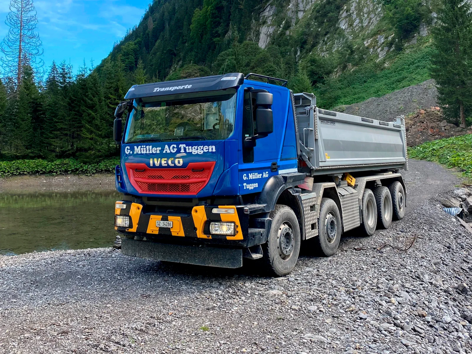 Wir führen sämtliche Schüttguttransporte von Kiesmaterialien über Beton bis zu Belagstransporten mithilfe moderner Kipperfahrzeuge, Fahrmischer und Thermosilos durch. Unsere zeitgemässen Fahrzeuge mit verschiedenen Aufbauten gewährleisten den effizienten Transport von Baumaterialien.